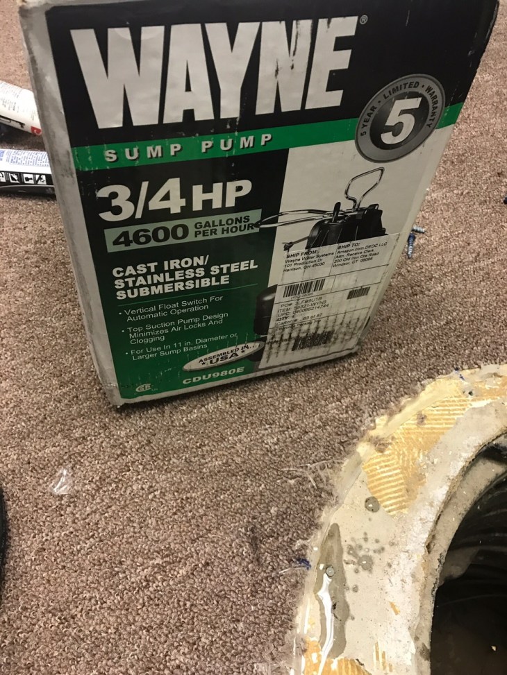 My home was built in 2004, so my existing sump pump is about 12 years old which is in my opinion playing with fire. I personally wouldn’t exceed 10 years with any single sump pump. My property tends to get a lot of water and my sump pump runs pretty frequently. So as I was approaching the idea of finishing my basement it was definitely time to replace my unit. The good news is it’s easy and surprisingly a cheap DIY for the initial swap. The only wrinkle with my process is that I have a radon cover on my existing well which added a little time to achieve the proper seal on the well. I also over-engineered my home (read more in the last section further below), but better safe than sorry!