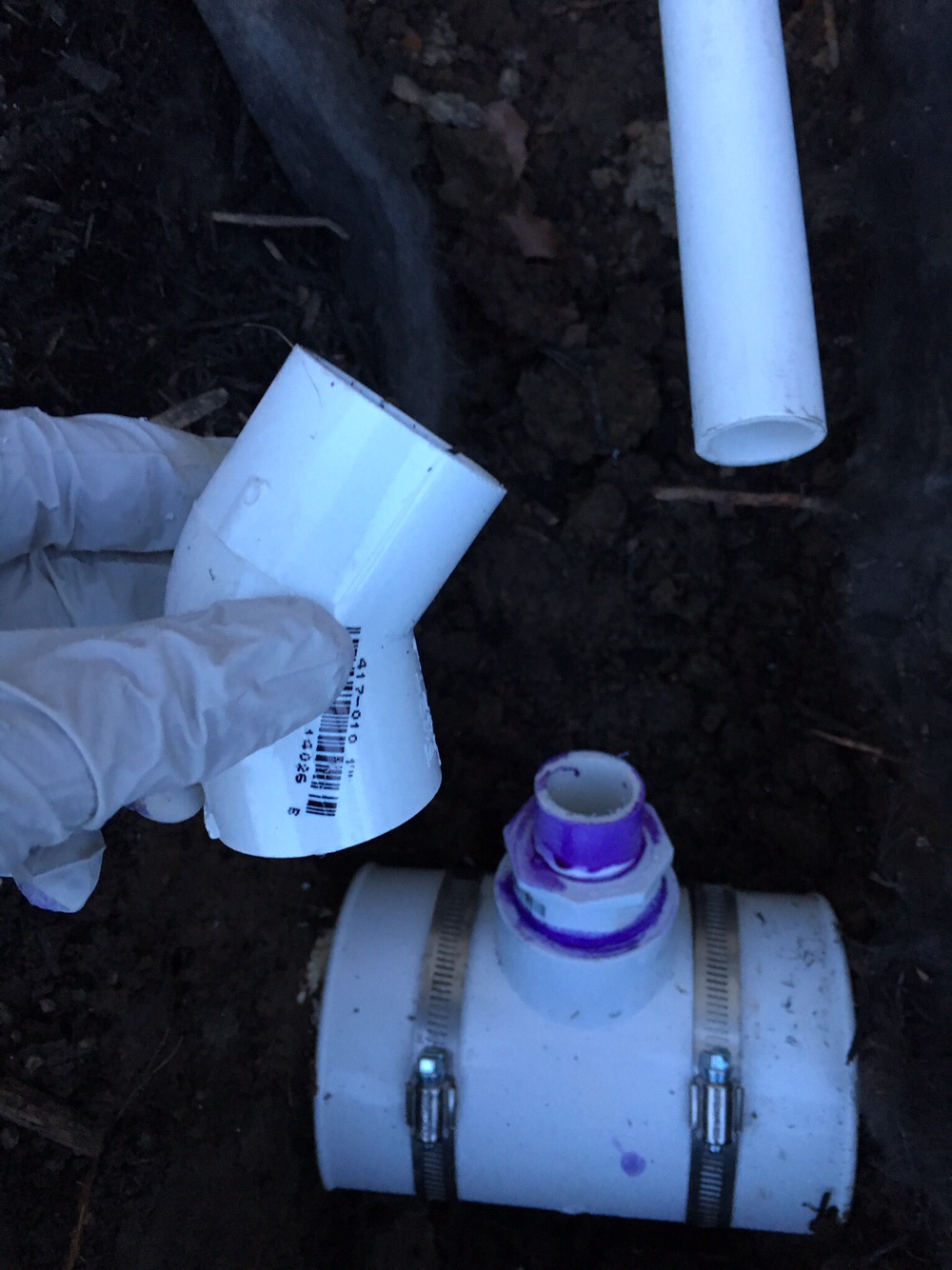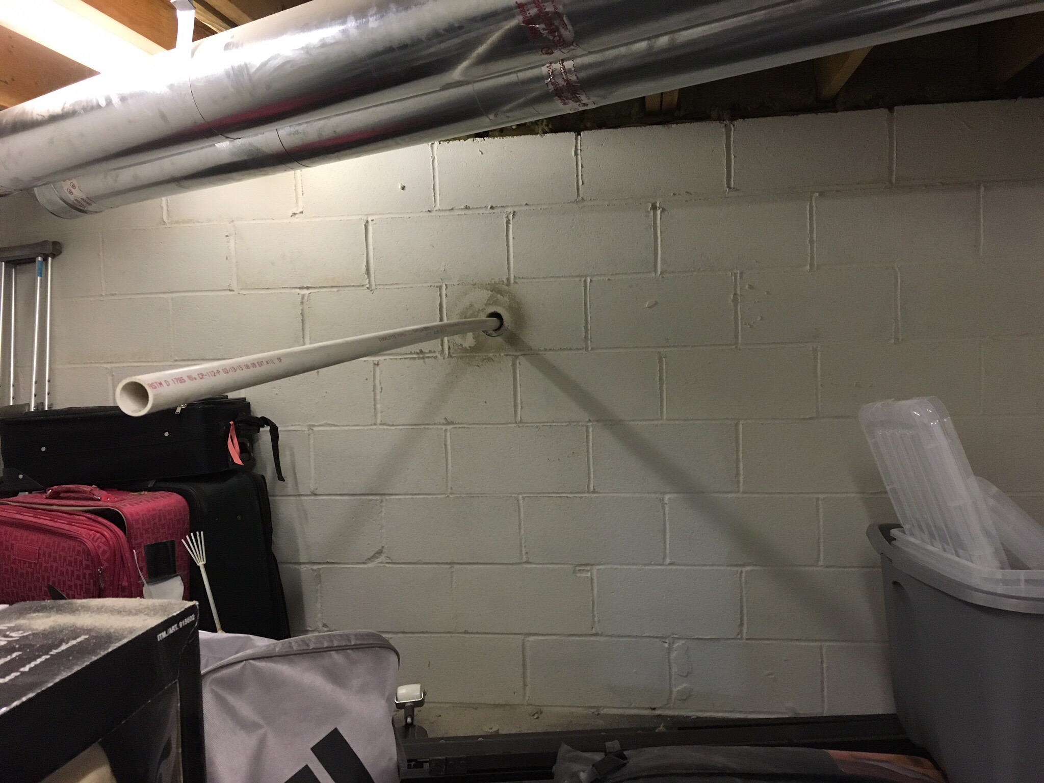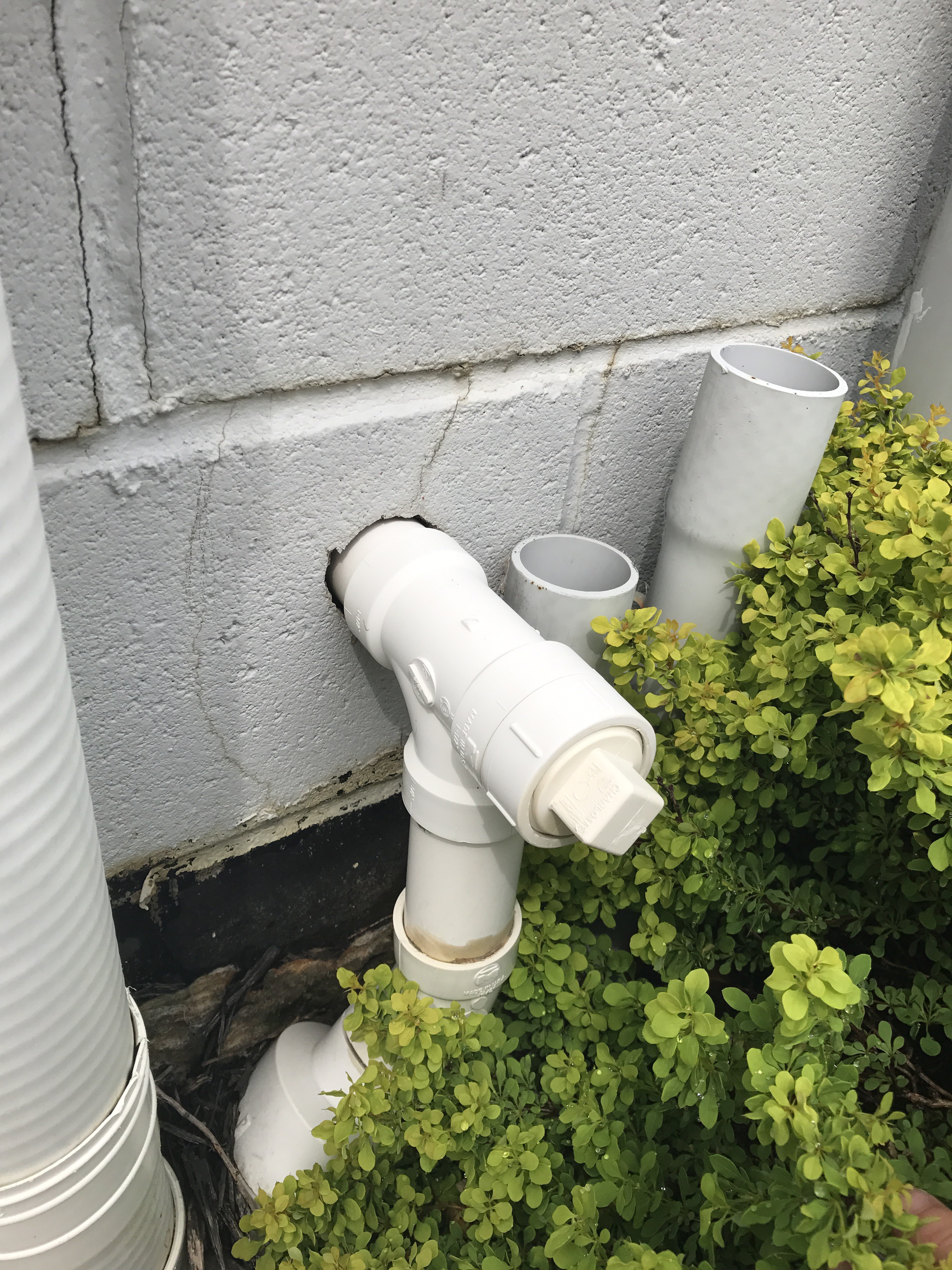 Once the hole was drilled I test fit the PVC pipe to make sure it would reach the existing drain pipe to the street.