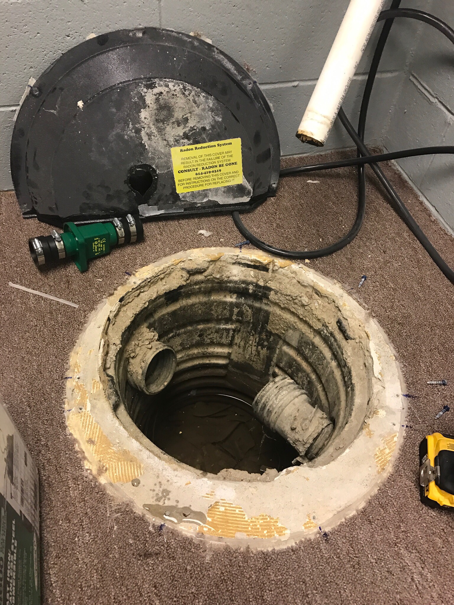 I unscrewed the radon cover and removed it so that I could access the well and the sump pump unit. I made sure I was working on a week that had no rain forecasted. Yes a week, just in case you have unforeseen issues.