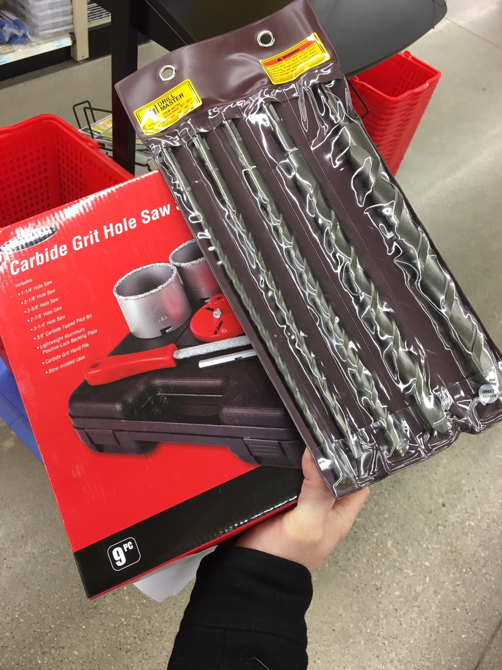Nice and slow drilling with a higher powered Dewalt drill. Occasionally I had to chisel out a little bit of the concrete. Eventually I hit it from both sides using the guide hole as reference. I also purchased the concrete drill bits 12″ variety pack from Harbor Freight that worked with my drill even tho they were SDS bits.
