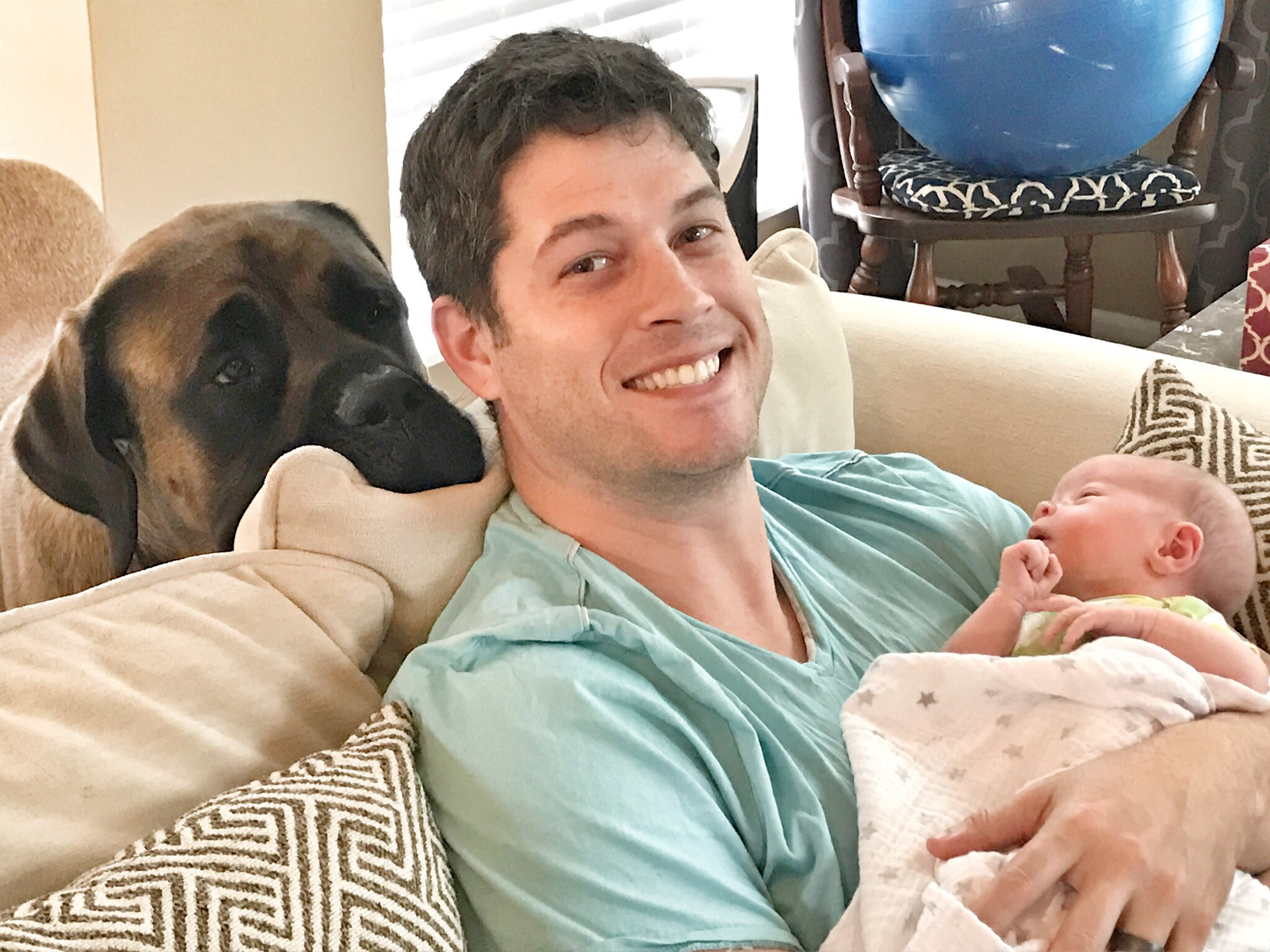 Everything is pure excitement prior to your little nugget being born. You have tons of time to decorate rooms, buy baby toys and clothes, it is awesome. You even have time to take silly photos of your dog.
