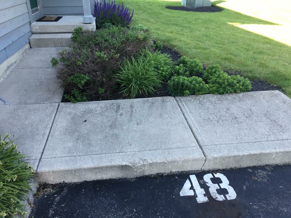 One more example at my condo, these sidewalks haven't seen love for years but its night and day better after a quick hit with the power washer. Works great for inside garages as well, just make sure you have a squeegee handy to get rid of excess water since garages tend to be pretty flat.