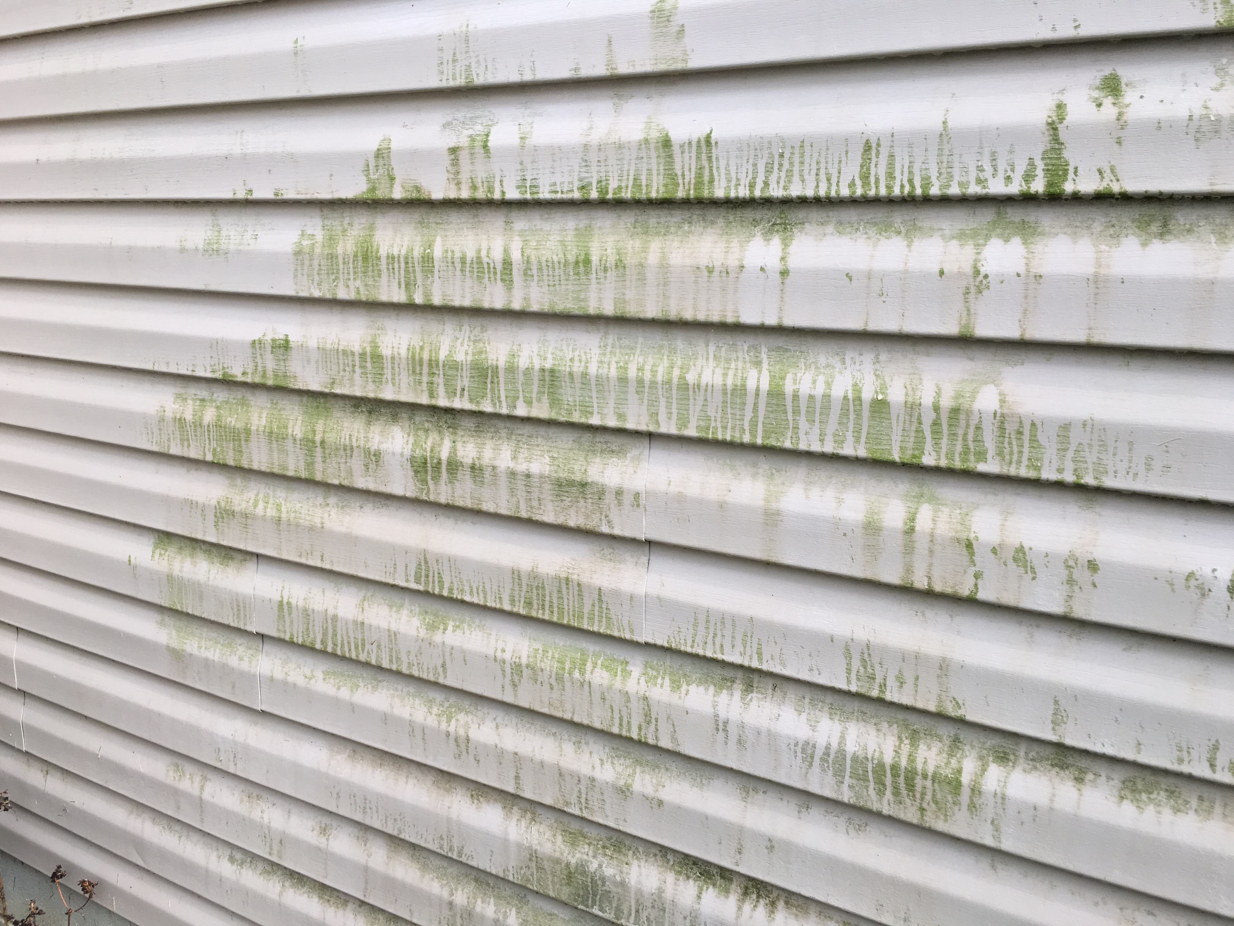 Below is a picture of some siding sprayed with JoMax, this is moments after the initial spray and you can see immediate loosening and removing the mold.